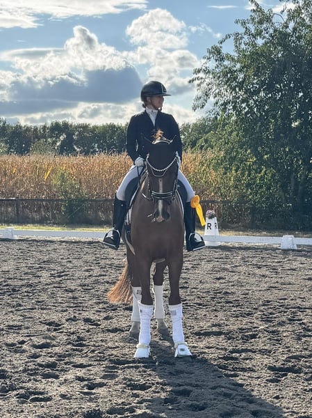 This 4-year-old gelding by Q-Sieben out of a Dauphin mare impresses with three very good basic gaits. He has shown himself to be equipped with pleasant rideability and convinces with his friendly nature. Inquiries exclusively by phone at 015737881045.