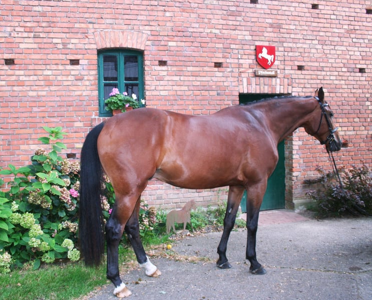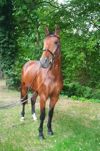 Züchterin verkauft tolles Nachwuchspferd. Gezogen aus einer Serafino/San Remo Stute, Vater Bailador/Benicio ( DE 431316564716, Hengst, 170cm, geb. 14.03.2016 ). Aufgewachsen in einer Hengstherde und seit einem Jahr vorbereitet mit viel Bodenarbeit und Equikinetic (Muskelaufbautraining ) für die Anforderungen des Anreitens. Ein sehr umgängliches, unerschrockenes und gehorsames Pferd. Er kennt Hufschmied, Zahnarzt, Verladetraining, Gelände. Ben Laddy ist seit April 2025 in Ausbildung und wird hier altersentsprechend geritten. Er zeigt sich sehr talentiert und brav. Das Pferd verfügt über drei sehr gute, ergiebige Grundgangarten mit guter Ausbildungsperspektive. Er wird hier sehr verträglich im Offenstall gehalten zusammen mit Stuten und Wallachen. Rundum ein charakterstarkes, schönes und liebenswertes Pferd.