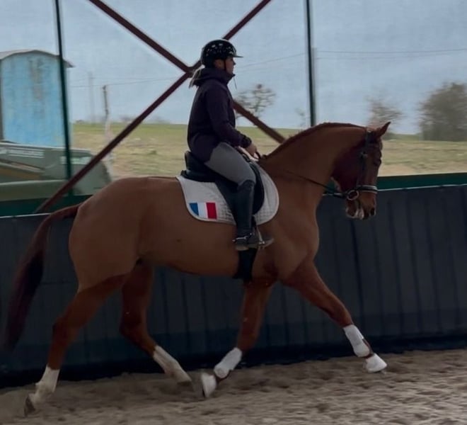 Top Dressur Hannoveraner Wallach – ideal für Dressurliebhaber und Turniere - Sehr Brav - Sportlicher und Sehr eleganter Typ. Dieser wunderschöne Fuchs-Wallach wurde im Jahr 2022 geboren und beeindruckt durch sein edles Erscheinungsbild sowie sein ausgeglichenes Wesen. Mit einem Stockmaß von 175 cm bietet er die perfekte Größe für ambitionierte Reiter, die Wert auf Qualität und Charme legen. Der Hannoveraner ist bestens im Dressursport ausgebildet und zeigt bereits vielversprechende Grundgangarten. Sein freundliches und lernbereites Temperament macht ihn zu einem zuverlässigen Partner für den ambitionierten Reiter oder Reiterin. Bei Interesse stehe ich gerne für weitere Informationen und eine Besichtigung zur Verfügung. Ein Pferd, das sowohl durch seine Optik als auch durch sein Potenzial überzeugt!