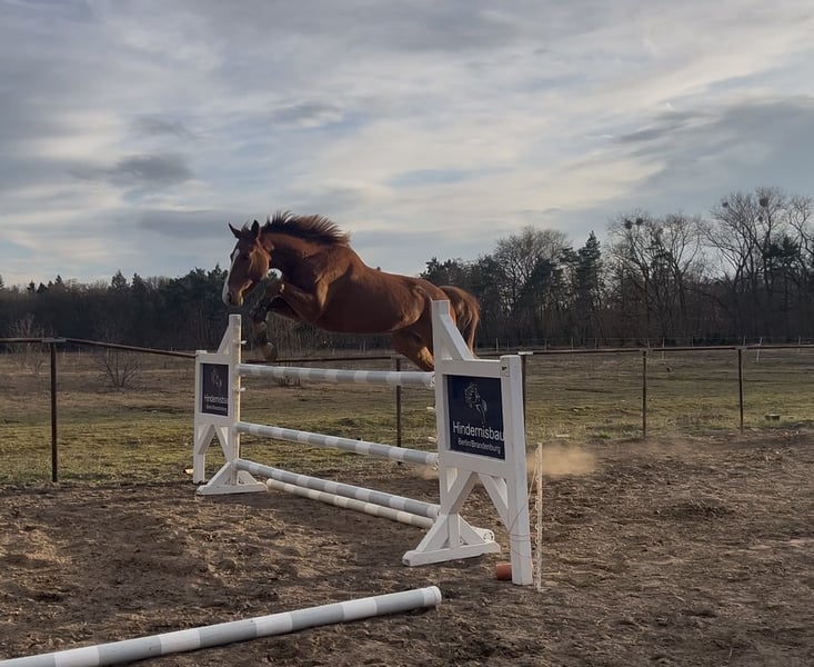 Dexter ist ein außergewöhnlicher 4-jähriger Hannoveraner Wallach (1,80 m), der durch Abstammung, Vermögen und Charakter sofort ins Auge fällt. Er stammt aus einem hoch erfolgreichen internationalen Sportstamm (Diego de Semilly (Diarado) x Stalypso). Sein Halbbruder ist bereits bis 1,50 m im Springsport erfolgreich, und auch Dexter selbst zeigt bereits jetzt viel Vermögen und Übersicht am Sprung. Aufgewachsen im Offenstall auf großzügigen Weiden konnte er sich körperlich und mental optimal entwickeln. Dadurch bringt er eine robuste, stressresistente Mentalität und ein sehr gutes Fundament mit. Wald, Straßen, Gelände und Auswärtstraining kennt er bereits und bleibt auch in neuen Situationen ruhig, aufmerksam und lösungsorientiert. Beim Anreiten wurde besonderer Wert auf Zeit, Vertrauen und eine korrekte körperliche Entwicklung gelegt. Dexter wurde bewusst schonend aufgebaut, ohne durch zu frühe oder zu intensive Belastung überfordert worden zu sein. Dadurch präsentiert er sich heute mit einem gesunden Fundament für eine langfristige sportliche Karriere. Unter dem Sattel ist Dexter in allen drei Grundgangarten geritten. Im Freispringen zeigt er Mut, Vermögen und ein hervorragendes Distanzgefühl. Er geht mit viel Motivation an die Aufgabe, bleibt konzentriert und zeigt eine natürliche Sprungbereitschaft mit stets nach vorne gerichteten Ohren. Auch im täglichen Umgang überzeugt er vollkommen: Schmied, Tierarzt und Anhänger sind für ihn kein Problem. Charakterlich ist er ein freundlicher, verschmuster und sehr menschenbezogener Partner, der schnell Vertrauen fasst und stets mitarbeitet. Durch seine Kombination aus Gelassenheit, Rittigkeit und sportlicher Motivation ist Dexter sowohl für ambitionierte Reiter als auch für jüngere oder weniger erfahrene Reiter interessant, die ein zuverlässiges und ehrliches Pferd mit viel Perspektive suchen. Dexter bringt bereits jetzt sehr solide Grundlagen mit und ist bereit, sein Potenzial im Springsport weiter zu entfalten. Videos sind selbstverständlich vorhanden. Röntgenbilder können bei ernsthaftem Interesse erstellt werden. Mit weiterer Ausbildung wird der Preis entsprechend angepasst.