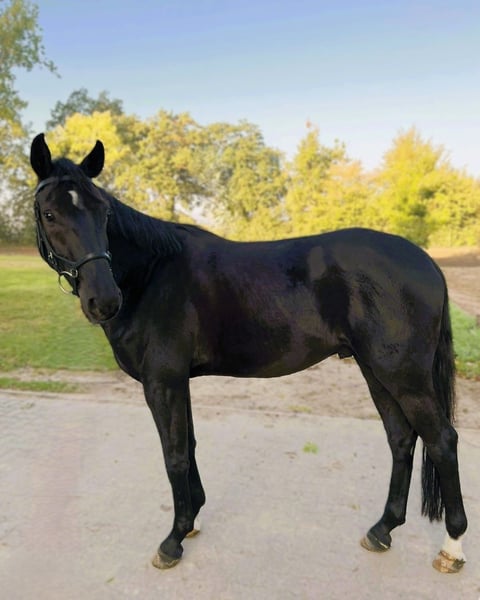Bildschöner, kopfklarer und bewegungsstarker Nachwuchswallach mit überdurchschnittlicher Grundqualität und Nervenstärke. Drei sehr gute, elastische Grundgangarten mit aktiv unter den Schwerpunkt fußendem Hinterbein. Der Wallach ist leichtrittig, immer motiviert und absolut unkompliziert sowohl im täglichen Umgang als auch unter dem Sattel. Kerngesund mit erstklassigem Röntgen-TÜV. Er ist bereits sicher angeritten und eignet sich für alle Reiter mit etwas Jungpferdeerfahrung, besonders auch für Junioren oder den Para-Sport. Er entwickelt sich mühelos entlang der Ausbildungsskala. Selbstverständlich lässt er sich problemlos verladen, auch allein. Aufgrund seiner exzellenten Rittigkeit und seiner vorbildlichen Einstellung stehen diesem Pferd alle Wege offen. Mit entsprechender Förderung sicherlich auch im oberen Leistungssport erfolgreich. Auch durch seine hochkarätige Abstammung bringt dieser außergewöhnliche Dressurnachwuchs hervorragendes Potenzial für den gehobenen Dressursport mit: Sein Vater ist der beeindruckende Dancier Gold (Gestüt Sprehe), der mit exzellenter Rittigkeit überzeugt und aktuell auf den Grand Prix-Sport vorbereitet wird. Er qualifizierte sich mehrfach überlegen für das Bundeschampionat und platzierte sich bei der WM der jungen Dressurpferde bis ins Finale. Für seine Leistungen wurde er mit der FRH-Auszeichnung des Hannoveraner Verbands geehrt. Auch in der Zucht ist Dancier Gold bereits überaus erfolgreich und stellt zahlreiche prämierte, hoch talentierte Nachkommen. Die Mutter dieses Wallachs stammt aus dem legendären Holsteiner Stamm 5421 – einem der bedeutendsten Leistungslinien der deutschen Warmblutzucht. Sie ist Schwester der gekörten Hengste Dresscode, Hohenstaufen I und II sowie eng verwandt mit Ramiros Bube, Ramiro's Boy und Fabion Blue Hors. Der Holsteiner Stamm 5421 brachte zahlreiche international erfolgreiche Vererber wie Quantensprung, Bellany, Don Crusador oder Ramiro’s Bube hervor. Geprägt von vielfach ausgezeichneten Stuten wie Pik Bube’s Girl und Langata’s Dame liefert dieser Ausnahme-Stamm bis heute Championatspferde in Dressur, Springen und Vielseitigkeit – ein eindrucksvoller Beleg für seine anhaltende sportliche und züchterische Relevanz.