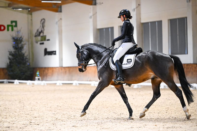 Age / gender: 4 years, gelding Small size – ideal for a smaller rider Pedigree: Friedrich der Grosse × Don Frederico Character: very well-mannered, calm, not flighty Correct, three even gaits Usage: prepared for dressage work, excellent for further education Health status: current veterinary examinations and vaccinations, under regular farrier care Sporting potential – open to further training. I invite you to see the gelding in person – you will fall in love with his pleasant demeanor and subtle work under saddle!