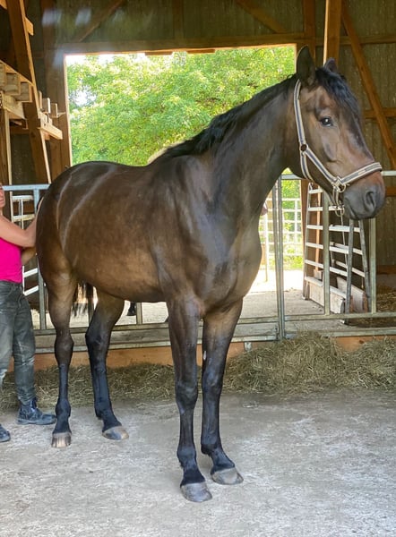 À vendre, Fin (Financier), un hongre hanovrien de 5 ans, élevé en dressage, avec un pelage brun foncé élégant. ✨ Informations clés : Âge : 5 ans Sexe : Hongre Race : Hanovrien Couleur : Brun foncé Taille : environ 1,65 m Description : Fin impressionne par son magnifique extérieur, son esprit clair et sa volonté d'apprendre. Il a été monté avec soin à l'âge de 3 ans et a principalement été entraîné en extérieur. Là, il se montre toujours fiable, fort nerveusement et comme un véritable cheval de confiance. En dressage, Fin est déjà formé à un bon niveau et possède le potentiel d'être développé davantage, apportant du plaisir tant dans le sport que dans les loisirs. En plus du travail classique sous la selle, il est formé en travail au sol et en liberté, ce qui en fait un partenaire particulièrement polyvalent. 🐴 Particularités : Habitué à l'abri ouvert et adore cette forme de logement Pieds nus Calme chez le maréchal et lors du transport Utilisation polyvalente : Dressage, saut d'obstacles, extérieur, travail au sol et en liberté Fin recherche maintenant un foyer aimant où il pourra continuer à être formé et prouver ses qualités en tant que partenaire fiable et polyvalent. 📍 Localisation : 78073 (Ba-Wü) 💰 Prix : 15 000 € négociable ‼️ Vente pour des raisons de santé – avec un cœur lourd. ➡️ Si intéressé, n'hésitez pas à me contacter – vidéos et autres informations sur demande !