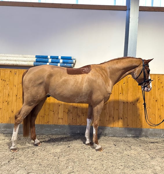 A talented Hanoverian gelding with great potential is for sale. The 5-year-old Harlequin stands approximately 16.1 hh and is currently in age-appropriate training. He impresses with his bravery, willingness to perform, and a very good work attitude. During free jumping and initial under-saddle exercises, he demonstrates exceptional talent and always maintains great composure. Harlequin is farrier- and loading-friendly and is uncomplicated in daily handling. He is herd-safe and familiar with both stable and pasture life. He has already gained some experience in the terrain and on the beach. He is ideally suited as a young prospect for ambitious riders seeking a horse with quality and development potential. A TÜV report without findings from June 2025 is available. Further information, along with photos and videos, can be provided upon request. Please contact via WhatsApp: 0176 31071625