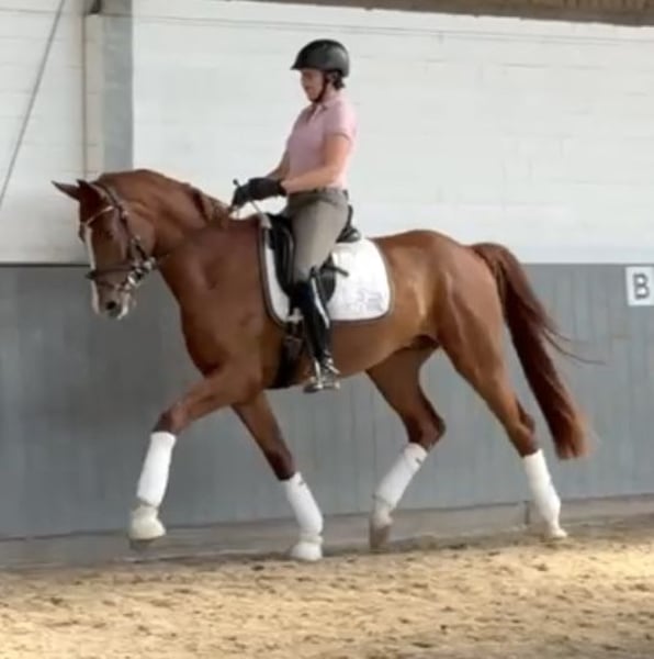 BELLIMORE stands out in many ways. At first glance, he catches the eye with his interesting markings. But he also impresses in terms of movement quality: his walk, trot, and canter are of exceptional quality and can be further promoted and developed. He has a good work ethic, appears somewhat youthful, but is always focused on the rider.
