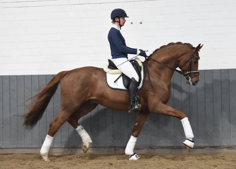For Benidor impresses not only with his charisma and presence but also with the quality of his basic gaits and his work ethic. Since December 2024, he has been excellent to work with. He has participated in one competition so far and won the riding horse test with a score of 8.5 in trot and an overall score of 8.2. His mother was the vice-champion at the Bundeschampionat for 4-year-olds. X-rays are good.