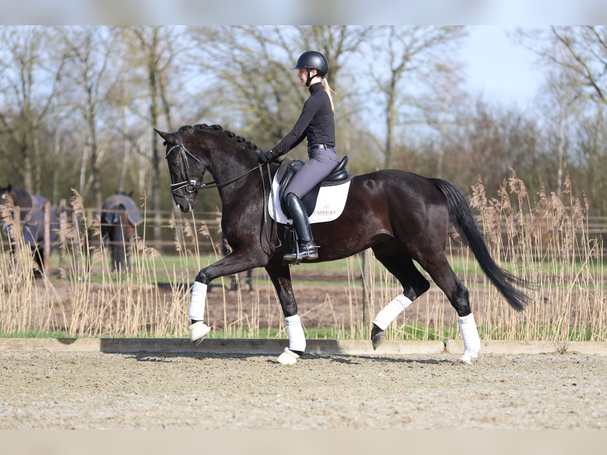Te koop: Super gave ruin van wereldkampioen Don Martillo! Don Diamond is van wereldkampioen Don Martillo uit een moeder Diamaggio en daarachter Grand Prix hengst Bennetton Dream. Met sport zit het dus wel goed in Don Diamond! Don Diamond is nog steeds van de fokker en daardoor is zijn hele geschiedenis bekend. Sinds enkele weken staat hij nu bij ons op stal voor de verkoop. Don loopt wel iets achter in zijn opleiding, door zijn grootte is er rustig met hem aangedaan. Wij hebben hem nu enkele keren meegehad naar vreemd terrein en zijn eerste concours heeft hij inmiddels gewonnen! Don is zeer getalenteerd en laat zeer veel aanleg voor het hoogste werk zien, dit zit hem nog wel eens in de weg, dus we zoeken een ruiter voor hem die niet beginnend of angstig is. Don Diamond heeft drie zeer goede gangen, is zeer goed bewerkbaar, maar heeft wel veel looplust en werkt graag! Vanwege een stalgebrek is de vraagprijs aangepast. Don Diamond is goed op de röntgenfoto's inclusief hals en rug. Video en meer info via telefoon/ mail of whatsapp!