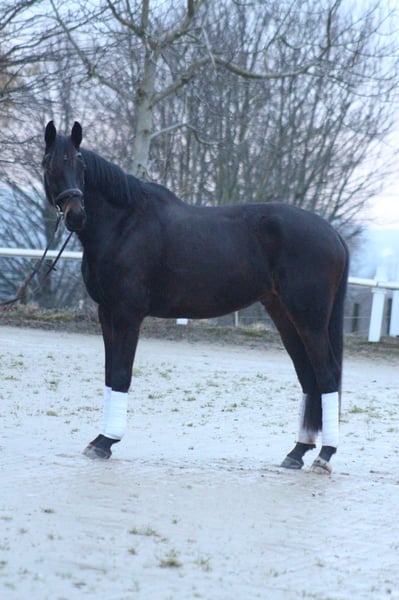 This 5-year-old gelding is currently looking for his perfect home. Dreamy stands approximately 1.73 meters tall and truly lives up to his name. Whether on the lead or under saddle, he is always an absolute sweetheart. He learns very quickly under saddle and brings great joy with his gentle nature. He is still at the beginning of his training, but already jumps small courses and shows enjoyment in pole work. I can see him as both a leisure horse and an excellent training horse for dressage or show jumping. He has three good gaits, with the walk and canter being particularly notable. Due to his temperament, he is suitable for a nervous or less experienced rider. He is also very friendly towards other horses. Currently, he spends half of the day on the paddock with us. If you are looking for an honest and sensible horse, you’ve come to the right place. We wish him a loving home with a family environment. A recent TÜV inspection from 2023, with no findings, including assessments of his back, neck, and poll, is available. Trial rides are of course possible, and videos can be sent upon request. For questions, please contact us at: 0157 56375226 Pedigree: Dream Boy x Van Gogh