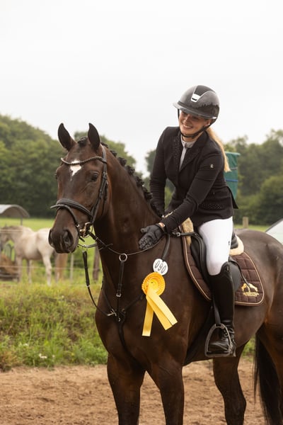 This promising 4-year-old gelding impresses with quality and a remarkable temperament. He already has show jumping success under his belt, having won in the A-level jumping classes and placed in L-level competitions. In handling, he is consistently well-behaved, personable, and straightforward. Under saddle, he is a pleasure to ride—motivated, willing, and always eager to please his rider. In the show jumping arena, he demonstrates good awareness, ability, and an unwavering desire to safely clear every obstacle. He easily and happily masters cross-country jumps. In dressage, he is already well-trained at an elementary level and can perform flying changes. An ideal horse for ambitious riders seeking a talented, well-trained young horse with a lot of heart and promising future potential. Please contact us exclusively by phone at 015237351947 if interested.