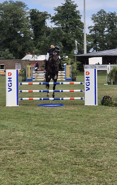 Deze veelbelovende 4-jarige ruin overtuigt door kwaliteit en een opmerkelijke instelling. Hij heeft al successen behaald in het parcours: winst in Springpaarden A en geplaatst in Springpaarden L. In omgang is hij altijd braaf, mensgericht en makkelijk in de omgang. Onder het zadel is hij prettig te rijden, gemotiveerd en altijd bereid om het zijn ruiter naar de zin te maken. Bij het springen valt hij op door overzicht, vermogen en de onvoorwaardelijke wil om altijd veilig over de sprong te komen. Hij overbrugt hindernissen met gemak en plezier. Dressuurmatig is hij al degelijk op goed A-niveau getild en beheerst vliegende wissels. Een ideaal paard voor ambitieuze ruiters die een prestatiegericht, goed opgeleid jong paard zoeken met veel hart en toekomstperspectief. Bij interesse uitsluitend telefonisch contact: 015237351947