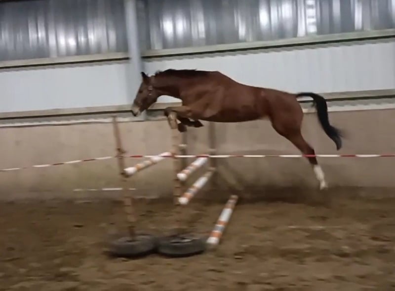 Excellent young show jumping horse by Casino Berlin x Fighting Alpha. He was gently backed last autumn and has always been well-behaved and easy to ride. When free jumping, he demonstrates a lot of talent. He has recently had a break, as he is still in a developmental phase. Unfortunately, he developed a summer eczema last year, which is why he is being sold at a significantly reduced price. Videos of his free jumping can be sent upon request. Phone: 0173/2464048