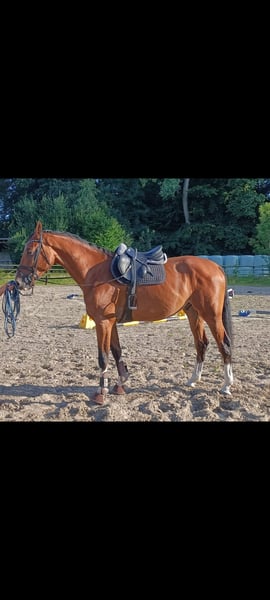Świetny młody koń skokowy po Casino Berlin x Fighting Alpha. Został delikatnie wyprowadzony na ujeżdżenie już zeszłej jesieni i zawsze był grzeczny oraz bardzo ujeżdżalny. Podczas skoków luzem wykazuje dużą zdolność i talent. Ostatnio miał przerwę, ponieważ nadal jest na etapie rozwoju. Niestety, w zeszłym roku rozwinął atopowe zapalenie skóry, przez co jest sprzedawany znacznie poniżej wartości. Na życzenie można przesłać filmy z pokazów skoków luzem. Tel. 0173/2464048