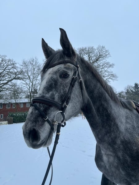 Canzler RS still belongs to the breeders. He is lightly backed and, due to his size, has had an extra year to develop. Canzler demonstrates confidence, good manners, and plenty of talent over fences. He is looking for someone who can dedicate time to his training and who understands his sensitive yet friendly character. He is familiar with the farrier and is regularly vaccinated. In the paddock, he is kept together with other horses. For serious inquiries or further questions, please contact Philipp Baumgart at 0172 4218881.