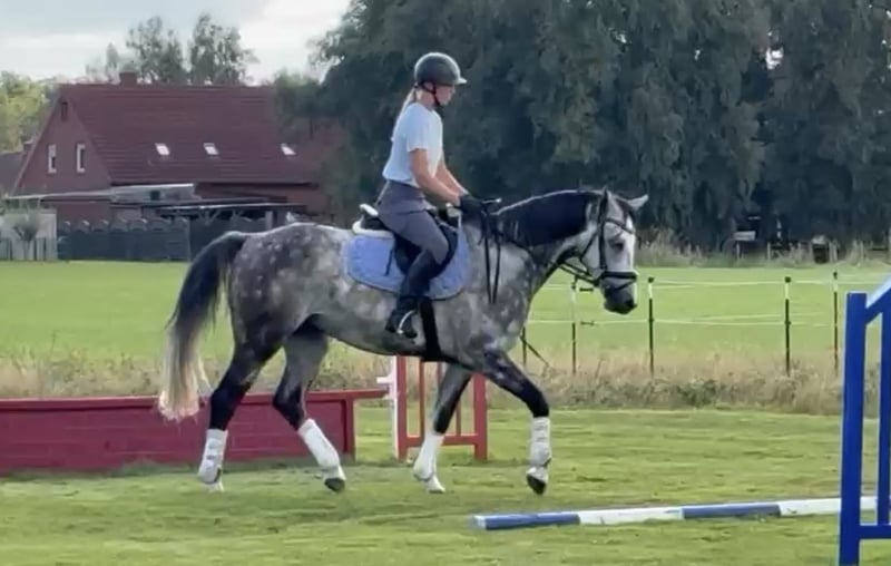 Heart horse is looking for its person! We are looking for a loving, supportive, and permanent home for our Hanoverian gelding Champ. * Pedigree: Caressini x Diacontinus * Height: approx. 1.56 m * Age: 6 years old (2019) Champ is a friend for life – well-behaved, uncomplicated to handle, and with an absolutely lovable character. Whether it's groundwork, lunging, trail riding, or riding without a saddle – he is up for any fun and enjoys the variety in his daily routine. He is currently placed at A level in show jumping and jumps up to L height in training. He also shows great joy in natural obstacles while out in the field. However, due to his age, he is not yet a self-starter, and for higher jumps, he needs a confident rider. Therefore, we wish for a young, ambitious rider who can further develop him with support. What makes him special is his balanced nature: he can have several days off and still be reliably ridden afterward. Champ lives with us in a herd (approximately 10 hours a day in the pasture with mares and geldings) and stays in a box at night. He is barefoot, vaccinated, regularly dewormed, and has his hooves trimmed. We are looking for a dedicated person for Champ and a loving "forever home." His new home should keep him engaged with varied activities and always prioritize his well-being. Champ will only be given away if everything fits perfectly, and he can be visited and tried out multiple times. If you are interested, we look forward to receiving a message with some information about you and his potential new home. Location: Landkreis Leer For more information, photos, and videos via WhatsApp: 0176 45857615