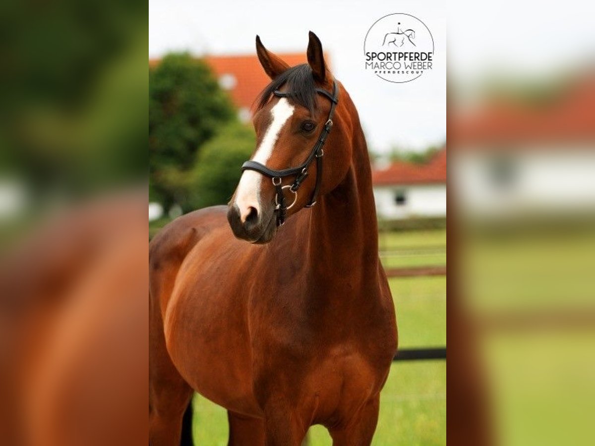 Dancier Gold x Franziskus This stunning gelding combines everything that ambitious riders desire: he is well-behaved, fearless, and completely straightforward to handle – yet he also possesses plenty of GO attitude and a spark of "electricity." He presents a very good impression both in the dressage arena and over fences. He impresses with quality, rideability, and enjoyment of work, demonstrating a promising, versatile aptitude. Thanks to his natural calmness and serenity, he also offers ideal qualities for hunter jumping. Completely uncomplicated in all aspects – whether in daily handling, loading, or at unfamiliar venues – he always makes things easy for his rider. He was gently backed at the end of his third year and is currently worked regularly 3-4 times a week. Additionally, he is accustomed to being in a herd on pasture – the best foundation for a balanced and healthy horse. He comes directly from the breeder and has been raised with great care and attention. In the current videos, he is shown without shoes. Dressage video: https://youtu.be/klsvbqOWgJk?si=u_SpKGThrCBUwCYt Jumping video: https://youtu.be/-rufzvYu_Ec?si=VTH1pnLA6BwQdXzI A recent health certificate (TÜV) is available.
