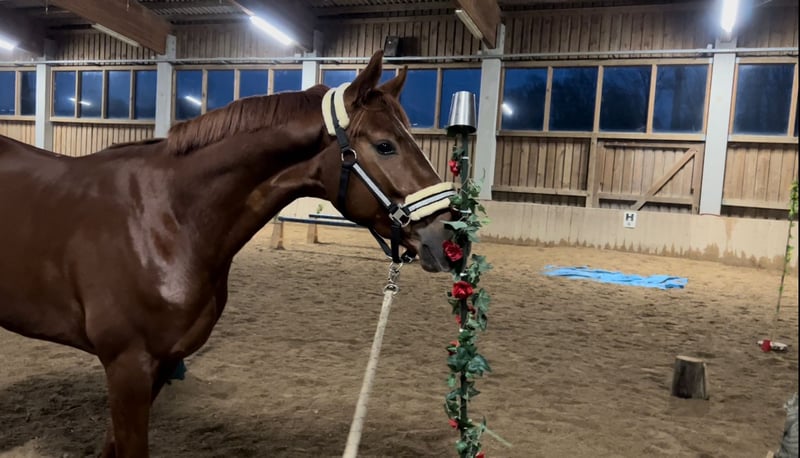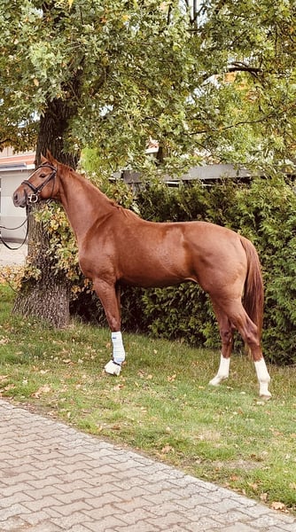 Piękny typowy kasztanowaty wałach z dużą ilością Go! Wymarzony charakter i siła nerwów ze sportowego i hodowlanego udanego matki (państwowa klacz premium)! O obiekcie De Niro - Totilas -Don Frederico wyposażony w najlepszą krew ujeżdżeniową! Niezwykle sympatyczny i milutki! Niezwykle zmotywowany i chętny do nauki w swojej codziennej pracy. Bardzo dobry aktualny AKU z Hannoveraner Verband dostępny!