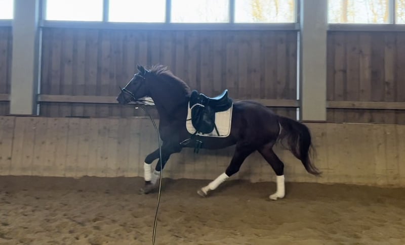 Superbe hongre bai typé ! Caractère de rêve et grande force nerveuse issu d'une lignée maternelle à succès en sport et en élevage (jument primée d'État) ! Équipé d'un excellent sang de dressage grâce à De Niro - Totilas - Don Frederico ! Extrêmement affectueux et câlin au quotidien ! Très motivé et avide d'apprendre dans le travail quotidien. Il connaît le travail au sol (Natural Horsemanship), les promenades, est longé et connaît le poids du cavalier. Excellente visite vétérinaire récente disponible du Verband Hannovrien ! Pour plus d'infos ou des questions concernant une visite, n'hésitez pas à me contacter !