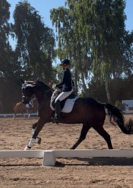 Zum Verkauf steht dieser beeindruckend schöne 6-jährige Hannoveraner Wallach mit bester Dressurabstammung von Quantensprung und Rohdiamant. Quebeck ist ein echter Blickfang! Er überzeug optisch durch seine hübsche Erscheinung und sein sehr gutes Interieur. Auf Tunieren wurde Quebeck von seiner Besitzerin vorgestellt und konnte etlichliche Platzierungen sammeln. Auf sein Konto gehen unter anderem zwei A** Siege, sowie der zweite und vierte Platz. In A Prüfungen sicherte er sich in den letzten zwei Jahren ebenfalls zahlreiche A Platzierungen. Auf den Tunieren zeigte er sich jederzeit nervernstark und ambitioniert. Quebeck verfügt über eine fundierte Ausbildung . Er ist fein an den Hilfen und bringt viel Talent für die weitere Förderung im Dressursport mit. Er verfügt über drei sehr gute Grundgangarten und ist im taglichen Umgang ein absoluter Schatz. Er liebt es betüddelt und geschmust zu werden. Beim Putzen, Satteln, Führen und Longieren ist er stets artig. Auf der Weide und dem Paddock ist er sehr verträglich und sozial. Ein umfangreicher großer Tüv mit Röntgenbildern + Rücken, sowie ein aktueller klinischer Stand liegen vor. Zähne wurden dieses Jahr im Oktober gemacht. Quebeck ist Schmiede- und Verladefromm. Wir wünschen uns ein liebevolles, pferdegerechtes Zuhause, in dem er weiter gefördert wird.