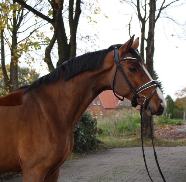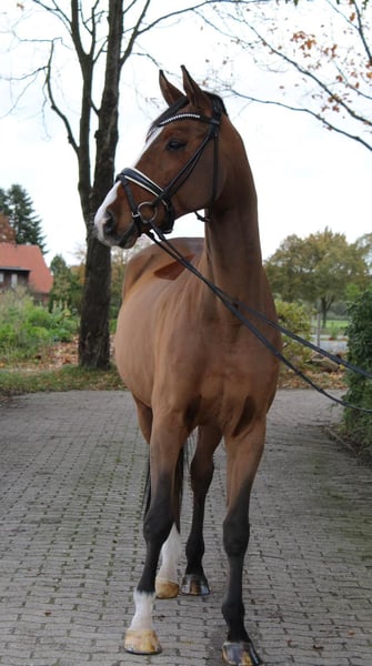 Rijbaarheid, interieur en bereidheid tot presteren zijn de begeerde eigenschappen die Benicio kenmerken, net als zijn vader Belissimo en deze jonge ruin. Vader en grootvader zijn uitgegroeid tot sympathietrekkers in de Duitse dressuurpaardenfokkerij en zetten de grote erfenis van Bolero voort in de mannelijk lijn. Westfaalse kampioenen en winnaars van het Bundeschampionat maken net zo goed deel uit van Benicio’s topkwaliteit als de gekeurde en gekroonde hengsten waarmee hij jaarlijks de prijzen wint. In 2024 werd hij met de Benicio x Scuderia zoon Be Sure gekroond tot Bundeschampion van de zesjarige paarden. De finaleplaats van de Hannoveraanse met 8,6 werd gewonnen door Beck in Magic, een Benicio x Dancier zoon. De vader van de moeder, Fürst Heinrich, is helaas veel te vroeg uit de fokkerij gestapt, maar liet een hele serie hoogpresterende nakomelingen achter in de fokkerij en sport. De ruin zelf overtuigt met zelfhouding en uitstekende instelling. Instappen, je goed voelen en vertrekken. In opdracht. Video op aanvraag.