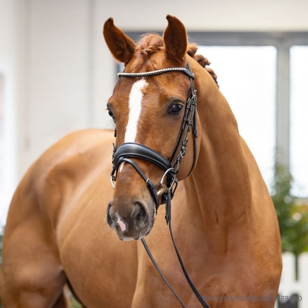 Versammlungsmöglichkeiten sind Vivancier in die Wiege gelegt. Bereits das einfache Jogging im Grundtrab lässt diese Art erahnen, die er als gerade sechsjähriges Pferd sehr einfach abrufen kann. Im Vergleich wirkt der Galopp etwas kürzer in der Anlage, doch auch hier kommen ihm die Möglichkeiten der Lastaufnahme entgegen, und er zeigt, wie weit er reifen wird. Auf dieser erarbeiteten Basis bringt Vivancier beste Voraussetzungen für die weitere Ausbildung mit. Im täglichen Umgang gefällt der schicke Fuchs mit seiner freundlichen, ausgeglichenen und absolut zuverlässigen Art. Ob beim Putzen, Satteln oder im Stall – er zeigt sich unkompliziert und angenehm im Handling. Auch das Verladen gelingt problemlos, sodass Ausflüge oder Turniere stressfrei gemeistert werden. Mit seinem charmanten Wesen ist er ein richtiger Ankommer. Altersentsprechend gefördert verfügt er bereits über eine solide Basis und überzeugt besonders durch sein großes Talent zur Versammlung. Er bringt beste Voraussetzungen für die weitere Ausbildung mit. 1. Generation Auktionspferde: Vet+ So Delight v. So Unique (VA 2025). 2. Generation Auktionspferde: Dalla Cia Giorgio v. Decamerone (VA 2017). Bes. Prämientöchter: HannPrA La Luna v. La Vie; HannPr Danubia Grace v. Decamerone (Herwart von der Decken-Schau Verden 2014). 3. Generation Sportpferde Dressur: gek. Hengst Danciano/Danciano de Malleret v. Dancier (DRE: int. Grand Prix mit Manuel Dominguez Bernal,Dressurprüfung Kl. S*** - Grand Prix de Dressage 2025,Dressurprüfung Kl. S*** - Grand Prix de Dressage 2025,GPS - Grand Prix Special 2024,GP - Grand Prix 2024,Dressurprüfung Kl. S*** - Grand Prix Special - 2024,Dressurprüfung Kl. S*** - Grand Prix de Dressage 2024,Dressurprüfung Kl. S*** - Grand Prix de Dressage 2024,Grand Prix -international- 2023,Dressurprüfung Kl. S*** - Grand Prix de Dressage 2023,Dressurprüfung Kl. S*** - Grand Prix de Dressage 2023,Dressurpferdeprfg. Kl.L Bundeschampionat 5 jährige 2015,Verden 2012,HM 2012: 320.000 €,Prä.Dre. Körung Verden 2012); gek. Hengst Rood Vander v. Rotspon (DRE: int. S** mit Martina Hannöver-Sternberg,Dressurpferdeprfg. Kl.LBundeschampionat 5 jährige 2007,Championat für Reitpferde o.M. 2005,Verden 2004,HM 2004); Warburton v. Wolkenstein II (DRE: S** mit Rainhard Nielsen); Dynamico 8 v. Don Frederico (DRE: S* mit Julia Rothermel,Fahren: S mit Edwin Kiefer); gek. Hengst Dancetto/v. Dancier v. Dancier (DRE: M** mit Jan-Dirk Gießelmann,Verden 2016,HM 2016: 200.000 €,Prä.Dre. Körung Verden 2016); Waikato 52 v. Wolkenstein II (DRE: M* mit Carolin Heyser). Sportpferde Fahren: Dynamico 8 v. Don Frederico (DRE: S* mit Julia Rothermel,Fahren: S mit Edwin Kiefer). Aufbauprüfungen Dressur: Fürst Lewandowski v. Finest (DRE: M mit Sarah Wawrauschek); HannPrA Daikiki/Daikiki 3 v. Dancier (DRE: L); Despejada v. Don Frederico (DRE: L,VA 2010); Dornenprinzessin v. Dornenkönig (DRE: L). Auktionspferde: Tango Amore v. Tarantino (FoVA 2025); Tarabas v. Top Gear (VA 2024); Vet+ Dory v. Donier (VA 2024); Dustin H. v. Don Frederico (VA 2006). Bes. Prämientöchter: HannPrA Fabelhaft/Fabelhaft 55 v. Fürst Fabrice; StPr Diamond of the first water v. Dancier; StPr Renate/Renate 33 v. Rotspon; StPrA Hildegunde v. Hochadel; StPr Waikiki/Waikiki 176 v. Wolkenstein II; StPr Welldone/Welldone 11 v. Wolkenstein II. 4. Generation Sportpferde Dressur: Wallaby 87 v. Wolkenstein II (DRE: S* mit Paulina Krafft); Wincero 3 v. Wolkenstein II (DRE: M* mit Louisa Müller); Da Vinci 299 v. Don Schufro (DRE: M* mit Leonie Richter). Sportpferde Springen: Verano Caliente v. Valentino (SPR: int. 1,40 m mit Viktor Birkenheier); Fabiano 82 v. For Edition (SPR: 1,50 m mit Philip Bölle); Go to Win 5 v. Gem of India (SPR: 1,35 m mit Sven Fehnl). Aufbauprüfungen Dressur: Wolkenkind v. Wolkenstein II (DRE: M mit Jens Krause); Dawine de Luxe v. Dr. Watson (DRE: L). Aufbauprüfungen Springen: Qualito de Briosa v. Qualito I (SPR: L); Via Bella H v. Uccello (SPR: L). Auktionspferde: Feuerherz v. Fürst Romancier (VA 2025); Don Valentino Carino 2 v. Don Frederico (VA 2010); Livington v. Lauries Crusador (VA 2004). 5. Generation Sportpferde Dressur: Goofy 63 v. Walt Disney I (DRE: M* mit Regina Mayer). Sportpferde Springen: Great Lady/Great Lady 8 v. Graf Sponeck (SPR: M mit Büsch,Anke). Aufbauprüfungen Springen: Gaylord 243 v. Graf Sponeck (SPR: L). Mutter: Divina ZL: 6/5 Großmutter: Wyomie ZL: 14/11 ZSP: Feldprüfung Reitpferd - Trab 6,50 Galopp 6,50 Schritt 7,00 / Durchschnitt Rittigkeit 7,25 / Durchschnitt Springen 7,00