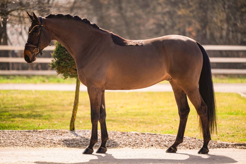 Dear Interested Parties, To arrange a test ride appointment, please send me a WhatsApp message. For further questions, I am available during the day via WhatsApp, and the best way to reach me by phone is between 4 PM and 7 PM. I look forward to hearing from you. You can find 15-25 additional horses on our homepage: www.angelina-devittorio.de ⭐️Barrydaale⭐️ Age: 6 years (2020) Height: approximately 17.1 hh Pedigree: Borsalino x Hohenstein Training level: Dressage horse class A, successful with scores up to 9.0, multiple high placements in Dressage Horse class L (3 starts, 2x 2nd place) Health certificate: Good health certificate including X-rays available Imposing 6-year-old Borsalino son with an excellent temperament and a completely balanced character. For sale is a stunning, impressive six-year-old gelding by Borsalino with three very good basic gaits. This talented gelding is already highly successful and victorious in dressage competitions of class A with scores up to 9.0, and has been placed multiple times high in Dressage Horse class L. He is very easy to handle at competitions. A particular highlight is his calm, resilient temperament. He is completely fearless, well-behaved in daily handling, and always eager to please his rider. This makes him very suitable for amateurs and somewhat less confident or inexperienced riders seeking a reliable young dressage horse. The gelding boasts an outstanding walk, a very expressive trot with plenty of impulsion, and an uphill, well-balanced canter. Due to his size and movement qualities (lots of impulsion but comfortable), he may not be ideal for absolute beginners. However, he is an extremely reliable partner for riders looking for a well-behaved, talented, and honest dressage prospect. The sale is made with a heavy heart due to lack of time, from a private seller. ⚜️Phone: 0171-3438949 ⚜️a.devittorio@web.de ⚜️www.angelina-devittorio.de ⚜️https://www.ehorses.de/angelinadevittorio ⚜️Facebook and Instagram: Angelina De Vittorio