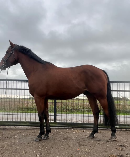 This 6-year-old Hannoverian gelding impresses with three excellent basic gaits, outstanding jumping ability, and exceptional rideability. Highly motivated with the necessary go, yet always well-behaved and sensitive to ride. Suitable for young girls who want to grow together with him in competition or leisure riding. Healthy, no vices, very people-oriented. Regularly dewormed, vaccinated, and trimmed by the farrier. Familiar with both open stable and box stall. Currently in professional training, he has already achieved some early successes in his first competition season after just a few starts.