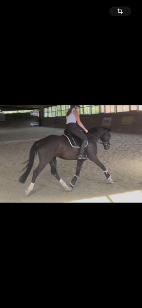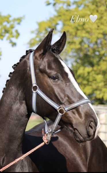 Diesen superbraven und sehr rittigen 6-jährigen Hannoveraner Wallach vom S-Dressurseriensieger Emilio Sanchez aus einer D-Online- De-Niro-Mutter haben wir selbst gezogen. Er sucht nach seinem Menschen oder seiner Familie, der er ganz viel Freude machen kann. Nach vielem Hin und Her und dem Einholen einer Zweitmeinung wird er nun weit unter Wert verkauft. Leider wurde bei einer AKU eine kleine Knochenzyste entdeckt, die ihn noch nie beeinträchtigt hat. Die weitere AKU verlief klinisch o.B. Eniro ist topfit. Er wurde mit 3 Jahren schonend angeritten und bekam jungpferdetypisch nochmal Pause. Er läuft solide alle 3 GGAs auf dem Platz sowie im Gelände alleine und in der Gruppe und das an jeder Position. Er ist regelmäßig im Anhänger unterwegs und verhält sich auch an fremden Orten vertrauensvoll und sehr lieb. Eniro läuft problemlos barhuf, er kennt Hunde, Trecker sowie LKW und lässt sich problemlos auch von größeren Kindern reiten. Allerdings sollten sie einem Pferd von 1.74 m gewachsen sein und schon reiten können. Ich wünsche mir für ihn ein tolles Zuhause, in dem er reiterlich weiter gefördert wird – als Turnierpferd, als tolles Familienpferd für Mutter-Tochter-Gespanne oder bei einer anspruchsvollen Freizeitreiterin. Gelegentliche Ausritte sollten natürlich nicht fehlen. Elmo ist 1,74m groß und befindet sich seit seiner Geburt in meinem Besitz. Ich gebe ihn nur in allerbeste Hände und möchte weiterhin Kontakt zu ihm haben.