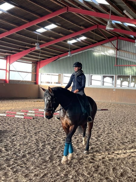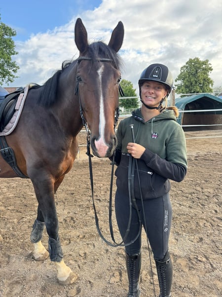 I am offering my 6-year-old Hanoverian gelding, a kind, well-trained dressage horse, due to a reduction in my stable. He is a beautifully built, dark bay with three solid gaits. I purchased him as a foal and raised him in an open stable. In spring 2025, due to his size, he was gently started under saddle quite late. Since then, he has proven to be very eager to learn, with a light and responsive aids. His outstanding work attitude is evident; even after several weeks off, he can be reintegrated without any napping. He confidently performs all three basic gaits and is currently learning to extend his trot and canter. He shows motivation in free jumping and is being introduced to small jumps under saddle. In the field, he is well-behaved and fearless in a group. He is experienced riding on different arenas and handles it with ease. Harry also loads onto the trailer without issues and is a pro at loading, even in the dark. Harry is a very affectionate horse, accustomed to contact with children and agricultural machinery, and always strives to please his handler. He is an absolute gem in handling. Given his relatively short riding career so far, I do not see him as an ideal beginner's horse at this time. With a sensitive, confident rider, he has great potential for advanced recreational riding. I can also see him competing at shows this upcoming season. I am looking for a loving person with experience in further training and handling young horses. Since he was born on pasture and has been kept in my open stable since, I prefer his future to include paddock and pasture turnout. Serious inquiries are welcome. Videos available upon request via WhatsApp. This is not a desperate sale – he will only be sold if everything feels right. Test rides are possible by arrangement; a fee of €30 applies, which will be deducted from the purchase price if he is bought. Pedigree: Emilio Sanchez x Don Henrico Height: 17.8 hh