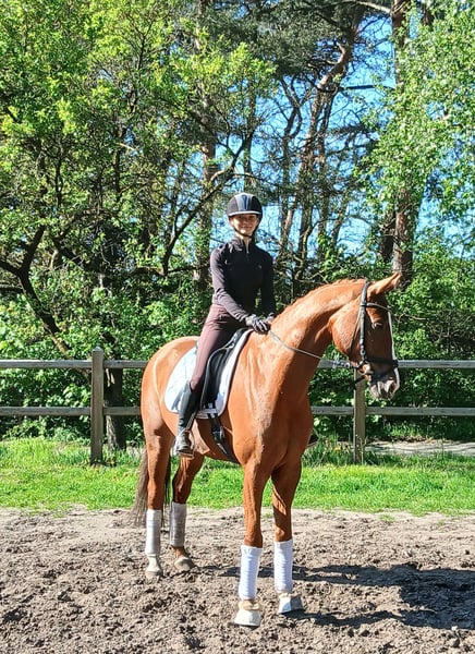 Tai is een zeer sympathieke en vriendelijke jonge hengst. Hij is bloedgebouwd en zeer elegant. Hij is voorzichtig aangezet en komt rechtstreeks van de fokker, waardoor alle deuren voor hem openstaan. Hij ligt erg prettig in de hand, heeft altijd een mooie go en wil werken. Ook heel zacht te rijden. Wij zien hem als een mooi paard voor overstap of voor dames. Omdat hij iets delicater en kleiner is, is hij eind vierjarige aangezet. Hij heeft nog geen wedstrijdervaring. Uitritten maken hem veel plezier, graag samen met een ander. Een zeer goede actuele keuring is aanwezig! Absoluut herdenvriendelijk. Geen eerdere gezondheidsproblemen. Neem gerust direct contact op via telefoon of bericht: 0172 8694703