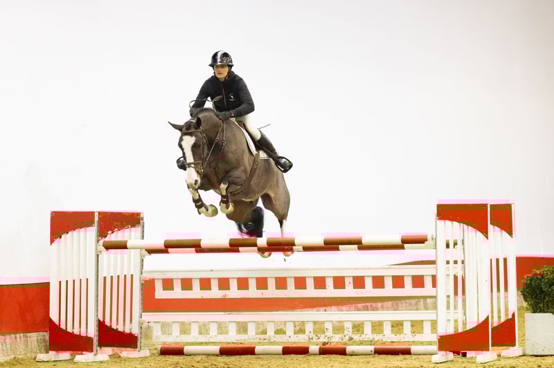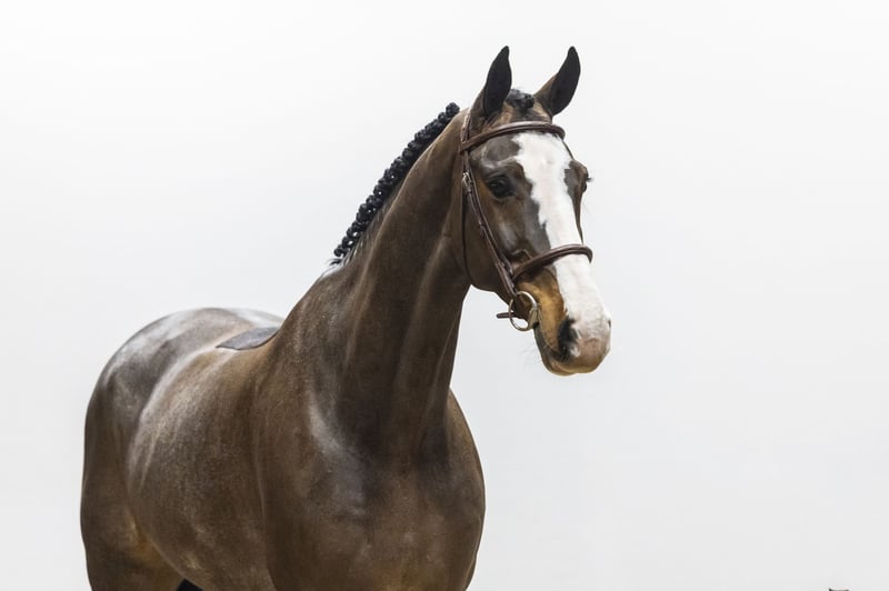 An eye-catching horse in both type and markings. A real standout in the ring. Beautifully uphill built with a sporty presence. He already has 1.20m experience and clearly shows his quality and mindset. He has a good, ground-covering canter and wants to be careful over the fences. Light-footed in his way of jumping with a pleasing technique. A horse that attracts attention through both his appearance and his way of moving.