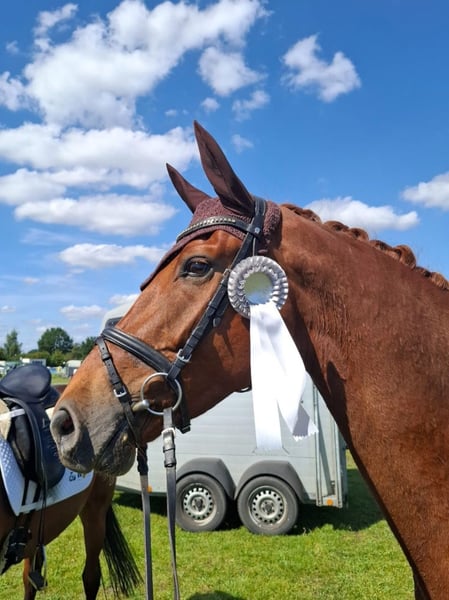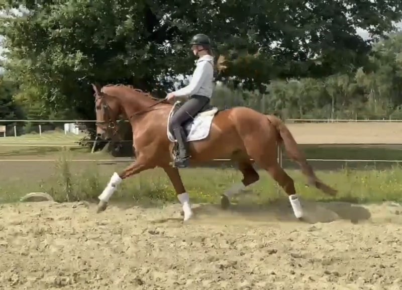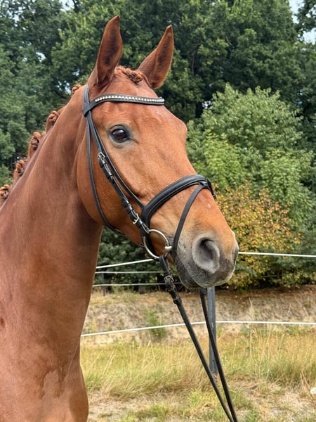 Wir verkaufen unseren 7-jährigen selbstgezogenen Wallach von Zackerey x Fürst Nymphenburg mit einem Stockmaß von 170 cm. Zampano wurde bei uns geboren und wurde 4-jährig angeritten. Seitdem wird er gewissenhaft ausgebildet. In seiner ersten Turniersaison im letzten Jahr konnte dieser typvolle Wallach durch seine drei hervorragenden Grundgangarten direkt mehrfach glänzen und tolle Platzierungen abräumen. Aus der Dressurpferdeprüfung Kl. A konnte er unter anderem zwei Mal mit einer Traumnote von jeweils 8,2 als Reservesieger hervorgehen. Zampano ist ideal für Reiter, die auf der Suche nach einem leistungsstarken Partner für den Dressursport und gleichzeitig liebevollen Freund für die Zukunft sind. Er zeigt viel Potenzial und ist bereit, auf Turnieren alles zu geben. Im Training sind die Lektionen der Kl. L abrufbar und er springt bereits spielerisch die ersten Wechsel. Selbstverständlich kennt er das Verladen und ist brav beim Schmied. Auf unserer Homepage www.dressurpferde-le-ni.de finden Sie ein Video. Wenn der hübsche, bewegungsstarke Wallach Deine Aufmerksamkeit erregt hat, melde dich gerne unter 015146542177.