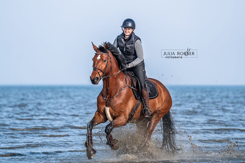 7-year-old self-bred show jumping gelding with L-level placement seeks suitable home I am looking for a loving and reliable home for my 7-year-old self-bred gelding. He has been trained, ridden, and presented at competitions by me – with nice successes: He has been placed multiple times in A-level show jumping tests and has even achieved scores over 8.0. He has also managed to place in an L-level show jumping competition. He is a horse with temperament, charisma, and a clear character. Not a pure beginner's horse, but an honest, willing partner for someone who appreciates a horse with personality. He needs a person with feeling, structure, and joy in a reliable partnership. However, with professional guidance and clear instruction, he is certainly also suitable for less experienced riders who seek support in further training. He is very people-oriented, familiar with everyday life in the stable and competition life. His basic training is solid; in the course, he shows overview, sufficient go, and a quick reaction at the jump. I am reluctantly letting him go, as I am heavily occupied with work and can only focus on one horse in the long term. I wish for him to have a home where he is not just "going along," but can become an integral part of everyday life – whether in sports, in the arena, or simply as a quality leisure partner. 📩 If you are interested, please send a message with some information about yourself (experience, housing, intended use, etc.). "I am interested" is unfortunately not enough for me – I would like to assess whether it could be a good fit.