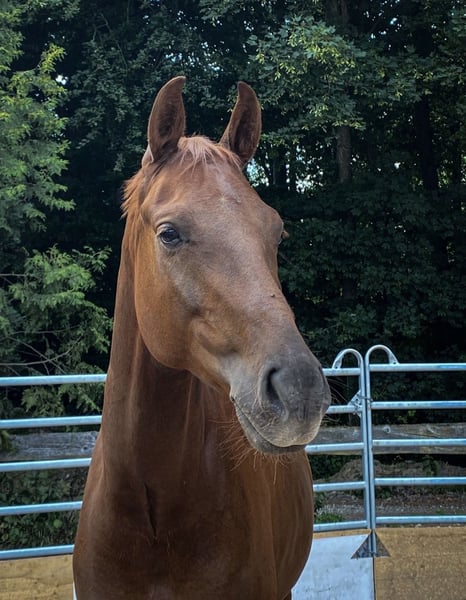 Schweren Herzens gebe ich meinen Hannoveraner Wallach First Romance H. („Romi“) als Beisteller in allerbeste Hände ab. Romi ist am 29.02.2019 geboren, dunkelfuchs, ca. 1,75 m groß und ein absoluter Liebling im Umgang. Er ist sehr menschenbezogen, aufgeschlossen, brav und verträglich mit anderen Pferden. Ich habe ihn dreijährig bekommen und selbstständig ausgebildet. Dieses Jahr war er noch auf zwei Turnieren unterwegs. Er ist mein absolutes Herzpferd, umso schwerer fällt mir diese Entscheidung. Leider wurde bei Romi eine Arthrose vom 2. bis 7. Halswirbel diagnostiziert. Auf tierärztliche Empfehlung hin wurde er operiert. Nach der OP entwickelte er jedoch eine Ataxie. Laut tierärztlicher Aussage ist er nicht mehr reitbar und wird kein Reitpferd mehr. Romi hat keine Schmerzen, er ist lebensfroh und bewegungsfreudig. Bewegung ist für ihn wichtig – nur eben ohne Reiter. Bodenarbeit, Spazierengehen, Pflege und Sozialkontakt sind weiterhin möglich. Bisher kennt Romi Boxenhaltung, ist dabei sehr unkompliziert und brav. Da er jedoch sehr sozial und verträglich mit anderen Pferden ist, gehe ich davon aus, dass eine Umstellung auf Offenstall oder eine Haltung mit viel Auslauf gut machbar ist. Ich befinde mich aktuell in der Ausbildung zur Pferdewirtin und stehe in einem reinen Sportstall, weshalb ich ihm die artgerechte Haltung, die er verdient, leider nicht bieten kann. ⚜️ Wunschzuhause: • Offenstall oder sehr viel Auslauf • alternativ Box nachts, tagsüber viel draußen • keine reine Boxenhaltung • ruhige, liebevolle Menschen, die ihn als Beisteller schätzen Romi wird nicht als Reitpferd abgegeben. Mir ist sehr wichtig, dass er einen endgültigen Platz findet, an dem er geliebt und gut versorgt wird. Bei ernsthaftem Interesse freue ich mich über eine Nachricht. Telefonisch bin ich unter der +4917650393776 erreichbar.