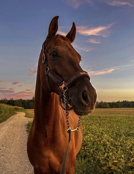 Schweren Herzens gebe ich meinen Hannoveraner Wallach First Romance H. („Romi“) als Beisteller in allerbeste Hände ab. Romi ist am 29.02.2019 geboren, dunkelfuchs, ca. 1,75 m groß und ein absoluter Liebling im Umgang. Er ist sehr menschenbezogen, aufgeschlossen, brav und verträglich mit anderen Pferden. Ich habe ihn dreijährig bekommen und selbstständig ausgebildet. Dieses Jahr war er noch auf zwei Turnieren unterwegs. Er ist mein absolutes Herzpferd, umso schwerer fällt mir diese Entscheidung. Leider wurde bei Romi eine Arthrose vom 2. bis 7. Halswirbel diagnostiziert. Auf tierärztliche Empfehlung hin wurde er operiert. Nach der OP entwickelte er jedoch eine Ataxie. Laut tierärztlicher Aussage ist er nicht mehr reitbar und wird kein Reitpferd mehr. Romi hat keine Schmerzen, er ist lebensfroh und bewegungsfreudig. Bewegung ist für ihn wichtig – nur eben ohne Reiter. Bodenarbeit, Spazierengehen, Pflege und Sozialkontakt sind weiterhin möglich. Bisher kennt Romi Boxenhaltung, ist dabei sehr unkompliziert und brav. Da er jedoch sehr sozial und verträglich mit anderen Pferden ist, gehe ich davon aus, dass eine Umstellung auf Offenstall oder eine Haltung mit viel Auslauf gut machbar ist. Ich befinde mich aktuell in der Ausbildung zur Pferdewirtin und stehe in einem reinen Sportstall, weshalb ich ihm die artgerechte Haltung, die er verdient, leider nicht bieten kann. ⚜️ Wunschzuhause: • Offenstall oder sehr viel Auslauf • alternativ Box nachts, tagsüber viel draußen • keine reine Boxenhaltung • ruhige, liebevolle Menschen, die ihn als Beisteller schätzen Romi wird nicht als Reitpferd abgegeben. Mir ist sehr wichtig, dass er einen endgültigen Platz findet, an dem er geliebt und gut versorgt wird. Bei ernsthaftem Interesse freue ich mich über eine Nachricht.