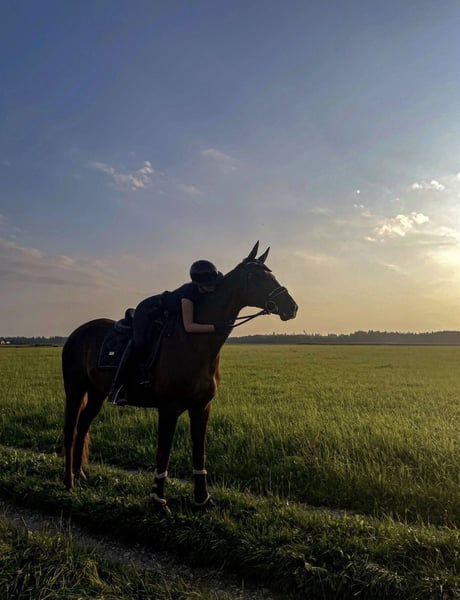 Schweren Herzens gebe ich meinen Hannoveraner Wallach First Romance H. („Romi“) als Beisteller in allerbeste Hände ab. Romi ist am 29.02.2019 geboren, dunkelfuchs, ca. 1,75 m groß und ein absoluter Liebling im Umgang. Er ist sehr menschenbezogen, aufgeschlossen, brav und verträglich mit anderen Pferden. Ich habe ihn dreijährig bekommen und selbstständig ausgebildet. Dieses Jahr war er noch auf zwei Turnieren unterwegs. Er ist mein absolutes Herzpferd, umso schwerer fällt mir diese Entscheidung. Leider wurde bei Romi eine Arthrose vom 2. bis 7. Halswirbel diagnostiziert. Auf tierärztliche Empfehlung hin wurde er operiert. Nach der OP entwickelte er jedoch eine Ataxie. Laut tierärztlicher Aussage ist er nicht mehr reitbar und wird kein Reitpferd mehr. Romi hat keine Schmerzen, er ist lebensfroh und bewegungsfreudig. Bewegung ist für ihn wichtig – nur eben ohne Reiter. Bodenarbeit, Spazierengehen, Pflege und Sozialkontakt sind weiterhin möglich. Bisher kennt Romi Boxenhaltung, ist dabei sehr unkompliziert und brav. Da er jedoch sehr sozial und verträglich mit anderen Pferden ist, gehe ich davon aus, dass eine Umstellung auf Offenstall oder eine Haltung mit viel Auslauf gut machbar ist. Ich befinde mich aktuell in der Ausbildung zur Pferdewirtin und stehe in einem reinen Sportstall, weshalb ich ihm die artgerechte Haltung, die er verdient, leider nicht bieten kann. ⚜️ Wunschzuhause: • Offenstall oder sehr viel Auslauf • alternativ Box nachts, tagsüber viel draußen • keine reine Boxenhaltung • ruhige, liebevolle Menschen, die ihn als Beisteller schätzen Romi wird nicht als Reitpferd abgegeben. Mir ist sehr wichtig, dass er einen endgültigen Platz findet, an dem er geliebt und gut versorgt wird. Bei ernsthaftem Interesse freue ich mich über eine Nachricht. Telefonisch bin ich unter der +4917650393776 zu erreichen.