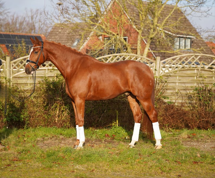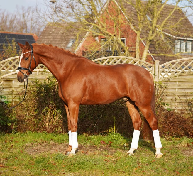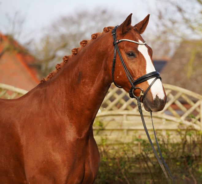 Characterful Chestnut Gelding with Excellent Temperament This large-framed son of Asgards Ibiza is available for sale. An expressive gelding with a lot of heart and a genuinely honest nature. He is a pleasure to ride, easy to handle, and reliably completes his daily work. He has three very good basic gaits and is on the way to competing in dressage horse L. Lateral movements have already been introduced. He consistently demonstrates a careful and straightforward demeanor with us. Suitable even for less experienced riders. Absolutely well-behaved in handling, balanced, and friendly within the herd. No emails – please only phone calls. Information provided without guarantee. Sale price plus VAT.