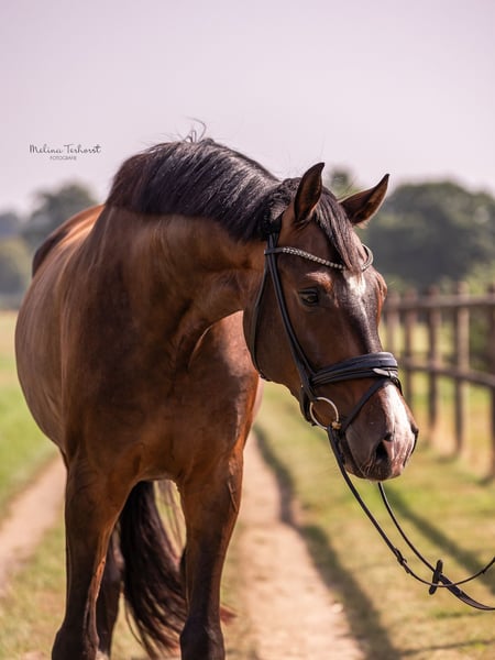 St. Lorenz ist ein ausdrucksstarker, dunkelbrauner Hannoveraner Wallach, der mit seiner beeindruckenden Präsenz überzeugt. Er zeigt sich im täglichen Training stets leistungsbereit, motiviert und begeistert durch seinen klaren Kopf sowie seiner hervorragenden Durchlässigkeit. Er ist sehr lektionssicher und bietet seinem Reiter stets ein angenehmes & leichtrittiges Gefühl. Dadurch ist er sowohl für den ambitionierten Turnierreiter als auch für Reiter mit Perspektive Richtung höherer Klassen bestens geeignet. Er ist mehrfach in Dressurpferdeprüfungen der Klasse A platziert und auch siegreich. Aufgrund von Zeitmangel dieses Jahr nur einmal Turnier vorgestellt und direkt in Dressurpferde L erfolgreich platziert. Aktuell befindet er sich auf gutem Dressurpferde M-Niveau und entwickelt sich weiter Richtung höhere Klassen. Im Umgang zeigt sich St. Lorenz absolut unkompliziert, brav und stets freundlich. Er ist selbstverständlich schmiede- und verladefromm. Aufgrund privater Umstände steht dieser besondere Wallach nun schweren Herzens zum Verkauf. Er wird nur in allerbeste Hände abgegeben. Guter TÜV aus März 2023 liegt vor.