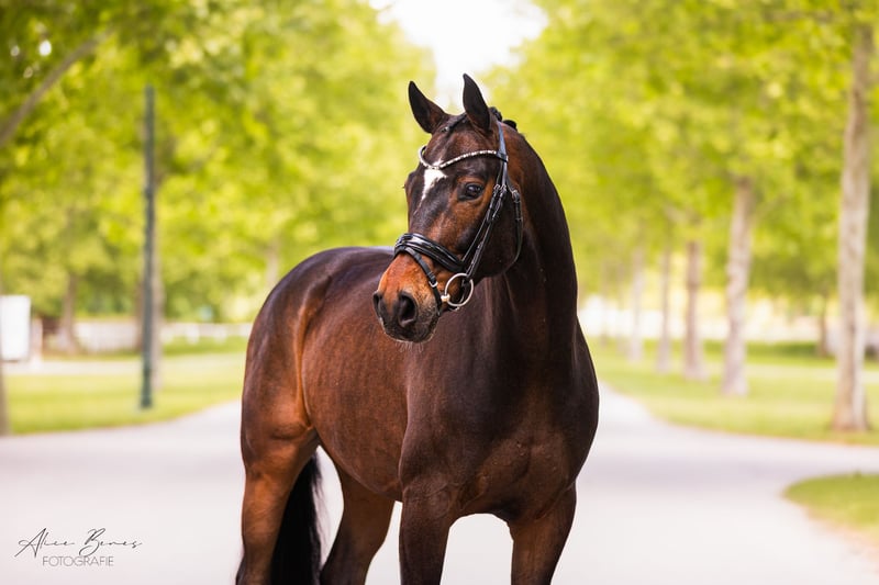 Unser bildschöner Hannoveraner Wallach aus dem Jahr 2017 sucht ein neues, passendes Zuhause. Er überzeugt nicht nur mit seinem eleganten Exterieur und seinen ausdrucksstarken Grundgangarten, sondern auch mit seinem liebenswerten Wesen. Er ist bis Dressurklasse LM ausgebildet, zeigt dabei stets Motivation und Lernfreude. Unter dem Sattel präsentiert er sich taktsicher, rittig und mit viel Präsenz im Viereck. Trotz seines freundlichen und ehrlichen Charakters benötigt er einen erfahrenen Reiter, der ihm Sicherheit gibt und ihn weiter fördert. Im Umgang ist er sehr brav, verschmust und immer bemüht, alles richtig zu machen. Ein Pferd, das mit der richtigen Bezugsperson über sich hinauswachsen wird!