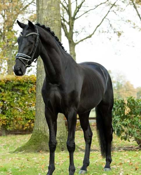 This absolutely stunning black Hanoverian gelding is a true gem, offering exceptional talent and versatility for both advanced show jumping and dressage disciplines. With his striking appearance, impeccable conformation, and strong presence, he stands out as a horse with immense potential and an exciting future in top-level competition. He demonstrates outstanding movement, with a powerful and correct walk, a lofty, elastic trot with excellent cadence and swing, and a canter that is both uphill and balanced, providing the foundation for success in dressage. His exceptional gaits combined with his natural ability to collect and extend make him an ideal candidate for upper-level dressage riders seeking a partner capable of performing at the highest standards. In show jumping, this gelding excels with impressive scope, technique, and carefulness. He has a strong aptitude for jumping, showcasing an excellent bascule over fences and an intelligent, brave approach to every obstacle. His ability to maintain rhythm and focus under pressure makes him a top contender in the show jumping ring, where he will thrive in both national and international competitions. This gelding is not only athletic, but his kind and trainable nature makes him suitable for a wide range of riders. Whether you are an ambitious amateur looking for a competitive partner, or a professional seeking a reliable mount for advanced competitions, this horse will meet all expectations. He is exceptionally well-mannered, attentive to the rider’s aids, and has the temperament needed to excel in both training and at shows. Fully vetted with clean x-rays and comprehensive vet reports, this Hanoverian gelding is in excellent health with no findings of concern, ensuring peace of mind for prospective buyers. This is a horse that represents the perfect combination of beauty, athleticism, and reliability. A true opportunity for any rider who wants to compete at the highest levels in dressage and show jumping.