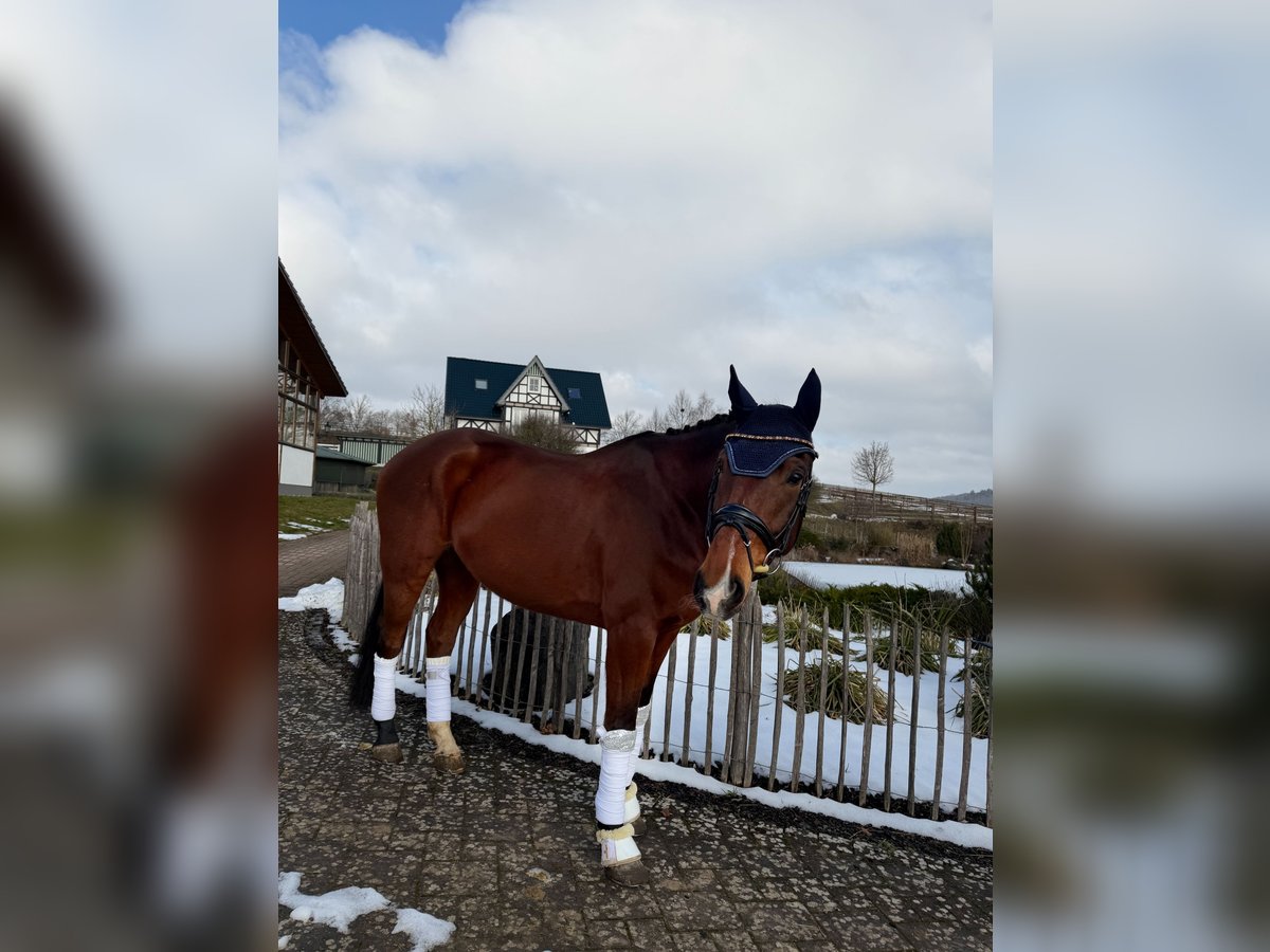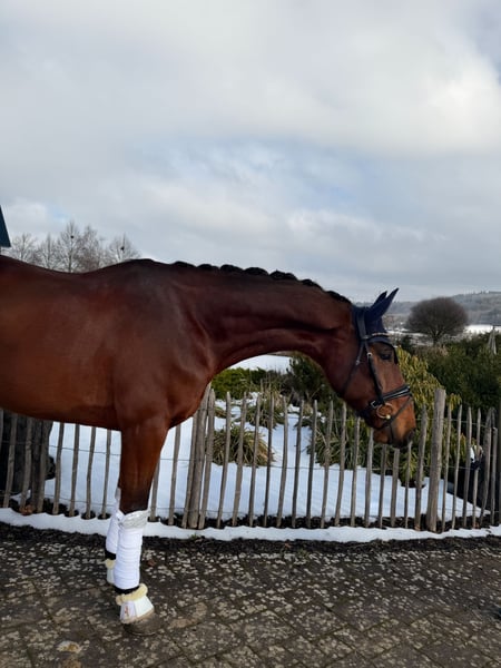 For sale is this exceptionally well-behaved, balanced, and high-quality 8-year-old Don Index gelding, who has already competed successfully up to class L at shows. At four years old, he achieved top scores of 8 in riding horse tests, highlighting his excellent basic qualities. Since then, he has earned several successes with an amateur rider up to class L* and is now ready to build on these achievements in the upcoming season in classes L** and M*. Not only is he a reliable partner in the arena, but he also excels in the outdoor riding area. He remains completely focused and fearless in all situations, making him the perfect horse for children, beginners, re-entrants, or even ambitious sport riders. Besides his lovable character, he possesses the quality needed for competitive riding. "Felix" is a truly lovable horse who always aims to please his rider and brings great joy to daily training! Of course, "Felix" has a valid veterinary certificate, is shoeing and loading friendly. He gets along very well with other horses. He can be viewed and tested at any time in 35708. For further questions and interest, please contact: 017620052380, WhatsApp available as well.