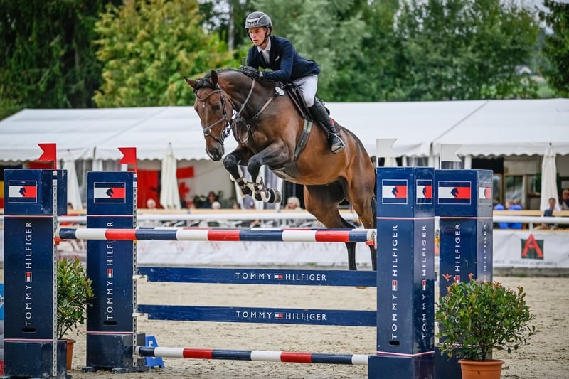 Kingslay Coman is a tall and yet blood-typed gelding for top-level sport. His jumping ability is unlimited and his quality is exceptional. Kingslay is impeccable in handling, affectionate, and enjoys working with people. He is very well ridden and also well trained in dressage, easy to ride, and an excellent partner for any rider. He has demonstrated impressive performances up to 1.35m.
