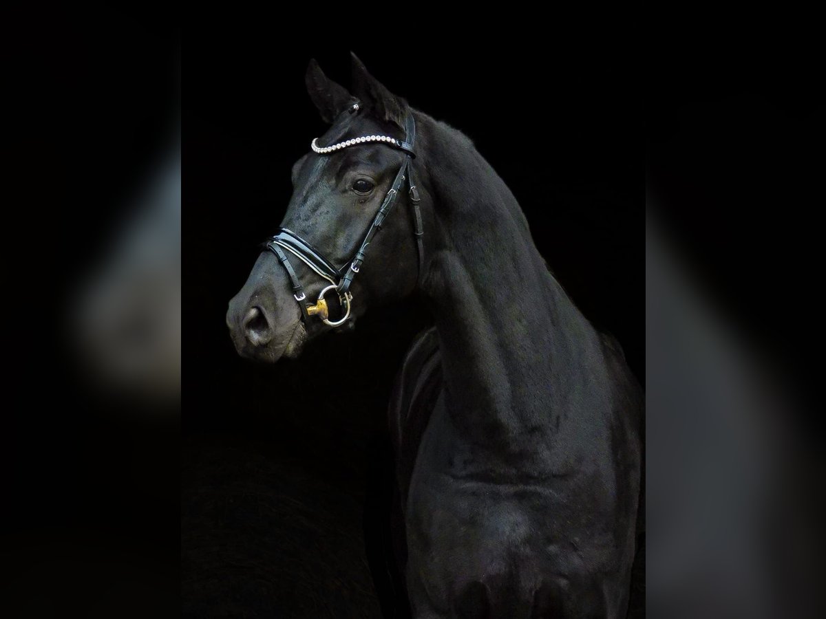 A stunning black gelding, born in 2018, with striking looks, charm, and presence. This Hanoverian is ideally suited for dressage and impresses with his elegant appearance and pleasant temperament. He has three exceptional basic gaits. Well-trained, eager to perform, very rideable, and completely straightforward. Placed in dressage competitions. For more information, please contact us at 0171/5477697.