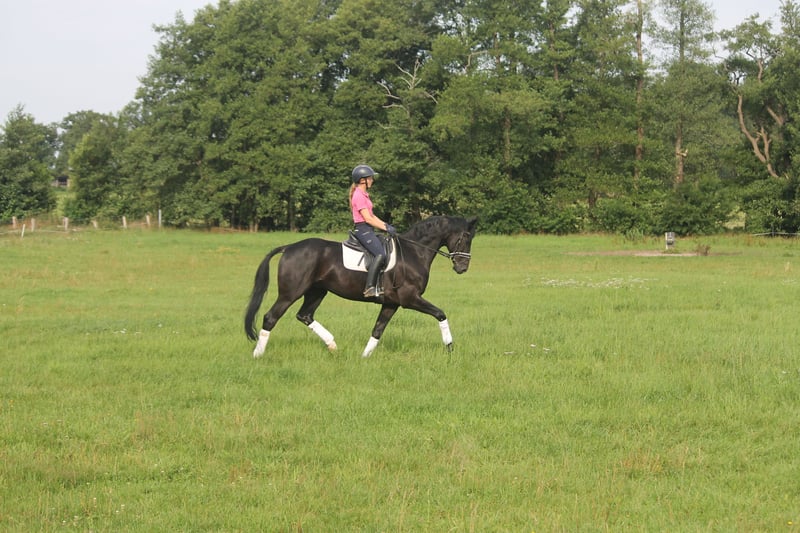 Who wouldn’t wish for it… to trot through the forest without tension and still ride an L-level dressage test at the competition on the weekend… this is embodied in this beautiful horse! “Livignon” comes directly from the breeder and has been professionally trained for the past few years. He has three excellent basic gaits and his work ethic is exemplary. In handling, he is one of the favorites in the stable because he is simply a treasure. An older good vet check is available and can be sent. Getting to know him, falling in love, and trying him out is always possible by phone appointment!