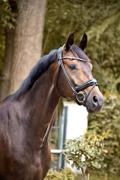 Una vera sintesi delle migliori linee di dressage al mondo, Fidenzio è un cavallo eccezionale per un cavaliere esigente. Un modello pensato per l’Università delle Scienze Applicate Fidenzio è un cavallo con un fascino naturale e un’indiscutibile presenza. Possiede un corpo armonioso e compatto, tipico dell’allevamento moderno di Hannover: un collo ben modellato, un dorso forte e una potente linea di spalla. I suoi movimenti sono fluidi, elastici e con un eccellente impegno, elementi fondamentali per un cavallo da dressage di alto livello. Un pedigree regale: il meglio della Germania È la sua genealogia a rendere Fidenzio un’opportunità rara. Riunisce linee leggendarie di cavalli da corsa e da dressage: • Figlio del famoso For Romance II: degno erede della linea "F" (Fürst Novelist, Fürst Heinrich), rinomato per trasmettere eleganza, modernità e un’andatura elegante. • Linea materna "Golden Blood": qui si conferma l’eccezionalità. Sua madre è figlia del leggendario Rubinstein I, uno dei più grandi allevatori del XX secolo, noto per il suo temperamento d’oro e facilità di maneggevolezza (Rittigkeit). • Influenza di Weltmeyer: si riscontra anche l’influenza di Weltmeyer, altro pilastro dell’allevamento tedesco, che apporta forza, sangue e potenza senza pari alla linea di spalla. Questo cocktail genetico è una garanzia di talento, intelligenza e predisposizione naturale, che si riflettono nel suo carattere e nelle sue capacità.