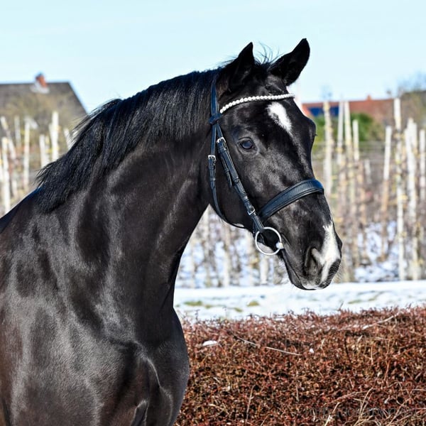 Seine erfolgreiche Verwandtschaft lässt darauf hoffen, dass Deltano in ebensolche Fußstapfen des Dressursports tritt. Denn seine Halbschwester Deltana setzt mit Frederic Wandres Akzente in Dressurprüfungen der Klasse S***. Und auch Deltano selbst ist mit Stärken ausgestattet – so sind die Grundgangarten Trab und Galopp in ihrem Ablauf, in Tragkraft, Kadenz und Bergauftendenz für den Dressursport der schweren Klasse prädestiniert. Möglich wird ihm das aufgrund seines stabilen Rückens, der den Reitern die Rückführung und Lastaufnahme enorm erleichtert. Gezeigt hat Deltano dies nicht nur im täglichen Training unter Emma Kanerva, sondern bereits auch bei den gemeinsamen Turnierstarts in 2025. Das eingespielte Team machte die Erstellung des Auktionsvideos aufgrund der Lektionensicherheit und Bewegungsqualität zu einer leichten Übung. Er befindet sich nach wie vor in Züchterhand von Ines Reyer, die ihrem kompakt aufgemachten Wallach wünscht, dass er mit seiner Qualität und Abgeklärtheit Reiter in ihrer Entwicklung fördern wird. Die Laufbahn von Deltano gibt dafür allen Grund zu dieser Annahme, denn lückenlos überzeugte er immer wieder mit sportlich-eleganten und zugleich kraftvollen Turnierauftritten. Sportname: Deltano Sporterfolge: Klasse M2 (Dre M**): 1x 1. Platz; 1x 3. Platz Klasse S1 (Dre S*): 1x 2. Platz; 1x 4. Platz DPF: Klasse A (Dpf A): 1x 4. Platz; 1x 5. Platz Klasse M (Dpf M): 1x 2. Platz; 1x 3. Platz 1. Generation Sportpferde Dressur: Deltana v. Dante Weltino (DRE: Grand Prix mit Nicole Wego-Engelmeyer); Desperanda v. Dante Weltino (DRE: S** mit Ines Reyer); Diamantis 4 v. Damsey (DRE: S* mit Emma Kanerva). 2. Generation Sportpferde Dressur: StPr Continence/Contenance v. Charon (DRE: S* mit Ines Reyer,FoVA 2002); StPrA Stedina/Stedina 3 v. Stedinger (DRE: M* mit Andrea Wende). Aufbauprüfungen Springen: Dakota 469 v. Diacontinus (SPR: 1,30 m mit Birgit Gärtner-Döller); Luigi 211 v. Landor S (SPR: L); Chocolate 47 v. Charon (SPR: L). gekörte Hengste: gek. Hengst v. Don Romance-Fürs v. Don Romance (Verden 2024,HM 2024). Auktionspferde: Donna Clara v. Don Olymbrio L (FoVA 2017); Lord Jever v. Livaldon (FoVA 2016: 19.000 €,VA 2019: 53.000 €); Fürstin von Neuscho v. Fürstenball (FoVA 2015); Franzi/Feels like Home v. Fürst Nymphenburg (FoVA 2012); Starlight v. Stedinger (VA 2009); Challenger v. Charon (FoVA 2000: 16.000 €). Bes. Prämientöchter: StPr Larissa v. Lordanos. 3. Generation Sportpferde Springen: v. Escudo I (SPR: 1,35 m mit Hugo CARVALHO). Aufbauprüfungen Springen: Cocorico v. Contendro I (SPR: 1,30 m mit Kristian Göbel,VA 2009); La Douceur v. Le Primeur (SPR: L). 4. Generation Sportpferde Dressur: Quimsalabimsaladusaladim v. Quality (DRE: M** mit Laura Bruckmeier,SPR: 1,30 m mit Marion Müller-Morgenthal); Archavin v. Abke (DRE: M* mit Delia Glück,SPR: 1,35 m mit Jule Mund). Sportpferde Springen: StPrA Quintara/Quincy Lady v. Quintender (SPR: int. 1,50 m mit Julien Epaillard,Grand Prix Table A 2020,VA 2014); Lordana J/La Melonga v. Lordanos (SPR: int. 1,50 m mit Björn Nagel,Springprüfung Kl. S -Großer Preis**- 145cm -international- 2013,Springprüfung Kl. S -Großer Preis**- 145cm -international- 2013); Cassiopeia/Cassiopeia 108 v. Catoki (SPR: int. 1,40 m mit Jens Christ,FoVA 2007); La Couleur 5 v. Ludwigs As (SPR: 1,40 m mit Leni Louisa Raab); Laszlo 87 v. Levisonn (SPR: int. 1,30 m mit Ziyin Li,VA 2017); Qunoh v. Quintender (SPR: 1,50 m mit Maximilian Krauß); Corlandos 4 v. Corlensky G (SPR: 1,45 m mit Milena BEREISHA,FoVA 2010); Feedback S v. Forsyth (SPR: 1,45 m mit Thilo Schulz); Prometheus by TSI v. Picard (SPR: 1,45 m mit Heim,Christian); Can Jump v. Catoki (SPR: 1,40 m mit Markus HAURI); Picador 20 v. Picard (SPR: 1,40 m mit Nordmann,Friedrich); Bella Brown v. Balou du Rouet (SPR: 1,35 m mit Francesca MALASPINA,FoVA 2012); Quindano v. Quintender (SPR: 1,35 m mit Juliane Porth,FoVA 2009); Archavin v. Abke (DRE: M* mit Delia Glück,SPR: 1,35 m mit Jule Mund); Sixteen 2 v. Silvio I (SPR: 1,35 m mit Thomas Graf); Number one 40 v. No Surrender (SPR: 1,30 m mit Korinna Aufdemkamp); Samira/Samira 468 v. Strahlemann (SPR: 1,30 m mit Maya Lege); Louis Vuitton 19 v. Lordanos (SPR: 1,30 m mit Hanna Schumacher,FoVA 2010,VA 2015); Quimsalabimsaladusaladim v. Quality (DRE: M** mit Laura Bruckmeier,SPR: 1,30 m mit Marion Müller-Morgenthal); StPr Cordana/Cordana 7 v. Contendro I (SPR: 1,30 m mit Stefan Böckler,VA 2013,VA 2012); La-Vita/Loro Picena v. Landsieger I (SPR: M mit Schlüsselburg,Dennis); Pandur S 2 v. Picard (SPR: M mit Schlüsselburg,Horst); William 100 v. Wildfang (SPR: M mit Maas,Peter); Petrocelly v. Picard (SPR: M mit Maintz,Manfred). Aufbauprüfungen Dressur: Mimi/Nümmich Wicht v. Nadir vom Splitting (DRE: L). Aufbauprüfungen Springen: gek. Hengst Carnegie/Carnegie 7 v. Chacoon Blue (SPR: 1,30 m mit Leonie Bußmann-Wöhle,Verden 2020,HM 2020: 60.000 €,Prä.Spr. Körung Verden 2020); Vilanos v. Valentino (SPR: 1,30 m mit Sandra Puhlmann,VA 2016); Cuaresma v. Carrico (SPR: 1,30 m mit Rebecca Hotz); Tessie Weasley v. Tangelo van de Zuuthoeve (SPR: L); Balia 6 v. Balou du Rouet (SPR: L,FoVA 2019); Chardonnay Blue 3 v. Casalido (SPR: L); gek. Hengst Change up v. Casino Berlin (SPR: L,Verden 2018,FoVA 2016,HM 2018); Diadarnos v. Diatendro (SPR: L); Quality's best Boy v. Quality (SPR: L); Chivanella v. Contendro I (SPR: L,FoVA 2008); Lucky Number Slevin v. Lordanos (SPR: L,FoVA 2006); Lacard 2 v. Landor S (SPR: L); Silvio Star v. Silvio I (SPR: L). gekörte Hengste: gek. Hengst Lokomotion/von Lordanos v. Lordanos (Verden 2006,FoVA 2004,HM 2006); gek. Hengst La Corazon v. Lordanos (USA 2003,FoVA 2000). Auktionspferde: Casadonna v. Casallco (FoVA 2023); Carnegia v. Chacoon Blue (FoVA 2023: 15.000 €); Copenhagen v. Chacoon Blue (FoVA 2021); Chacoon de la vie v. Chacoon Blue (FoVA 2020); Chaccon du Rouet v. Chacoon Blue (FoVA 2020: 20.000 €); Cordanos v. Conthargos (FoVA 2019); Chaccon du Rouet v. Chacoon Blue (FoVA 2019: 1