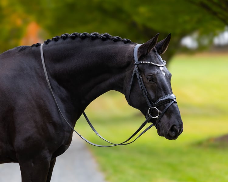 This black, unpolished diamond is by the world-renowned stallion Glamourdale, known for producing modern dressage horses with stunning gaits, excellent rideability, and strong competitive instincts. Gentleman embodies his pedigree, with energetic impulsion, perfect balance, and a positive, willing attitude - his walk and canter are exceptional. He has already successfully competed in 4-year-old classes in 2025, showcasing his talent. If you are looking for a young horse with a bright and promising future, Gentleman is the one for you!