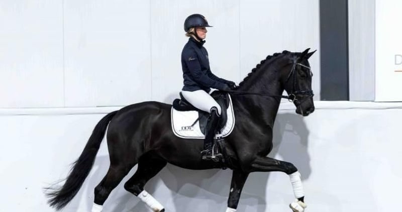 Wyjątkowo piękny, czarny klacz Hannoveraner, idealny dla wymagającego skoczka w sportach wysokiego poziomu. Ten elegancki athlete zachwyca nie tylko imponującym wyglądem, ale także doskonałym talentem do skoków, ostrożnością oraz znakomitą techniką. Zawsze wykazuje dużą chęć do pracy, łącząc ją z delikatnym ujeżdżeniem i zrównoważoną, klarowną głową. Klacz posiada bardzo dobrą podstawową edukację i już odnosiła sukcesy na zaawansowanym poziomie w skokach. Reaguje wrażliwie na sygnały jeźdźca, pozostając jednocześnie zawsze kontrolowana i niezawodna. Jej mocne ruchy, w połączeniu z doskonałym galopem, czynią ją idealnym partnerem dla ambitnych jeźdźców, którzy chcą rozwijać się w konkursach. Pod względem zdrowia, ten Hannoveraner jest w doskonałym stanie: jest w pełni przebadany, posiada aktualne, bez zarzutu zdjęcia rentgenowskie oraz aktualny raport weterynaryjny bez żadnych odchyleń. Prawdziwa perła dla sportów skokowych na wysokim poziomie – mocny, o silnym charakterze i z dużym potencjałem na przyszłość.