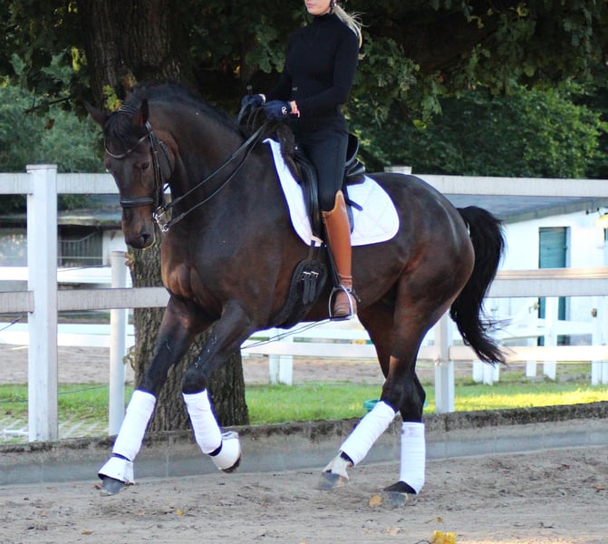 Zum Verkauf steht ein schicker 9 jähriger Wallach von Fürst Belissaro x Wordly. Der Wallach ist bis M sicher ausgebildet, S angefangen. Da wir auf gut ausgebildete Pferde Wert legen und keine Turnierambitionen aufgrund Zeitmangels hatten, ist der Wallach kaum Turnier vorgestellt. In diesem Jahr nur einmal und er hat sich dabei gut gezeigt. Aufgrund von Bestandsverkleinerung abzugeben. Für mehr Informationen stehe ich Ihnen gerne zur Verfügung.