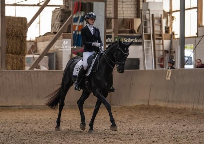 Ein außergewöhnlich eleganter, vollständig schwarzer Hannoveraner Wallach von beeindruckender Ausstrahlung und Qualität. Dieses Sportpferd vereint modernes Exterieur mit hervorragender Leistungsbereitschaft und eignet sich ideal für den gehobenen Dressur- und Springsport. Er verfügt über drei erstklassige Grundgangarten: einen raumgreifenden, taktsicheren Schritt, einen schwungvollen Trab mit viel Elastizität sowie einen kraftvollen, gut ausbalancierten Galopp. In der Dressur überzeugt er durch seine Rittigkeit, feine Anlehnung und hohe Lernbereitschaft, wodurch Lektionen auf fortgeschrittenem Niveau sicher abrufbar sind. Auch im Springen zeigt er großes Talent mit viel Vermögen, schneller Auffassungsgabe, sauberer Technik und der nötigen Vorsicht am Sprung. Sein Charakter ist ebenso hervorzuheben: Der Wallach ist freundlich, ausgeglichen und leistungsbereit, dabei stets motiviert und zuverlässig im täglichen Training wie auch auf dem Turnier. Er ist angenehm im Umgang, verlade- und schmiedefromm sowie unkompliziert im Stall. Gesundheitlich ist dieses Pferd in bestem Zustand. Aktuelle tierärztliche Untersuchungen liegen vollständig vor, einschließlich umfangreicher Röntgenbilder ohne Befund, die seine volle Einsatzfähigkeit im Sport bestätigen. Ein ideales Pferd für ambitionierte Reiter, die einen talentierten, gesunden und vielseitigen Partner für höhere Aufgaben suchen.