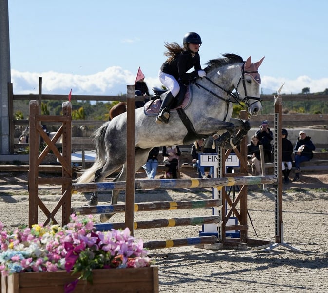 Verkauft wird eine Springstute für den Springsport, ideal für die Kategorie Alevín. Diese 10-jährige Springstute mit einer Stockmaß von 1,52 m ist perfekt für die Alevín-Kategorie geeignet. Sie verfügt über umfangreiche Erfahrung im offiziellen Turniersport, hat am Campeonato de la Comunidad Valenciana und an der Liga Federativa (Alevín) teilgenommen sowie am Campeonato de España de Escuelas, wo sie eine Silbermedaille im Mannschaftswettbewerb gewann. Zudem hat sie an Prüfungen für Kinder teilgenommen. Im Freiarbeit hat sie eine Sprungfähigkeit bis 1,20 m gezeigt, mit guter Technik, Einstellung und Potential. Sie besticht durch ihr hervorragendes Wesen: sehr ausgeglichen, sicher, kooperativ – Eigenschaften, die sie besonders für junge Reiter in Ausbildung und Wettkampf geeignet machen. Die Stute verfügt über sportliches Potenzial, ist zuverlässig im Parcours und besitzt ein außergewöhnliches Temperament. Sie ist bereit, weiterhin auf höchstem Niveau in ihrer Kategorie zu konkurrieren. Der Verkaufsgrund ist ein Kategorienwechsel. Probieren ist unverbindlich möglich. Weitere Informationen und Videos auf Anfrage.